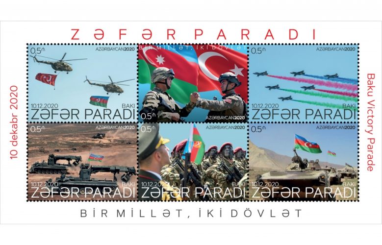 Nəqliyyat, Rabitə və Yüksək Texnologiyalar Nazirliyinin tabeliyində fəaliyyət göstərən “Azərmarka” MMC tərəfindən dekabrın 10-da Bakıda keçirilən qələbə paradı münasibətilə “Bir millət, iki dövlət. Zəfər paradı” adlı poçt markası və Birinci gün zərfləri hazırlanaraq dövriyyəyə buraxılıb.