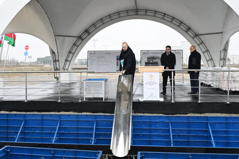 Prezident İlham Əliyev Sumqayıt Sənaye Parkında polipropilen və laminatlı kisə istehsalı müəssisəsinin təməlini qoyub